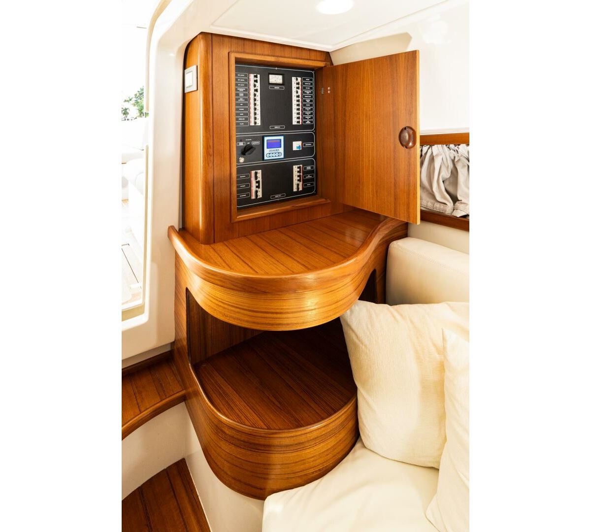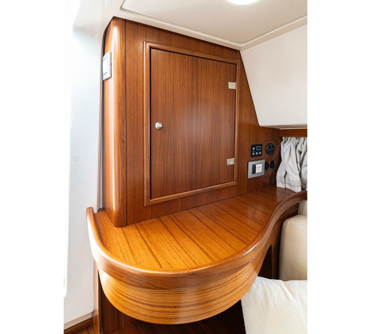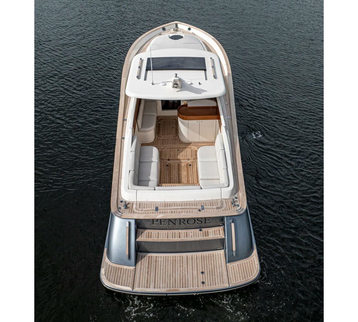 We are pleased to introduce PENROSE, a Lobster 35 built by Cantieri Gagliotta. Powered by Mercury diesels rated at 270 hp each, PENROSE cruises at 26 kts and has a range of around 250 miles. Her deep V hull design and SeaKeeper 2 ensure a smooth, dry ride while lounging in a choice of multiple areas aboard. An upholstered tanning area is on the bow or a U-shaped seating area is found aft in the cockpit, where a convertible table can covert the seating to a flush lounging surface. The outdoor galley is close by, behind the helm seating, and well-appointed, air-conditioned sleeping accommodations and a full head are forward. Penrose is the perfect platform for relaxation and luxurious entertaining on the water.